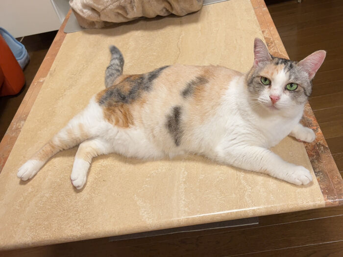 テーブルでヒンヤリ『ミーニャ』さんと